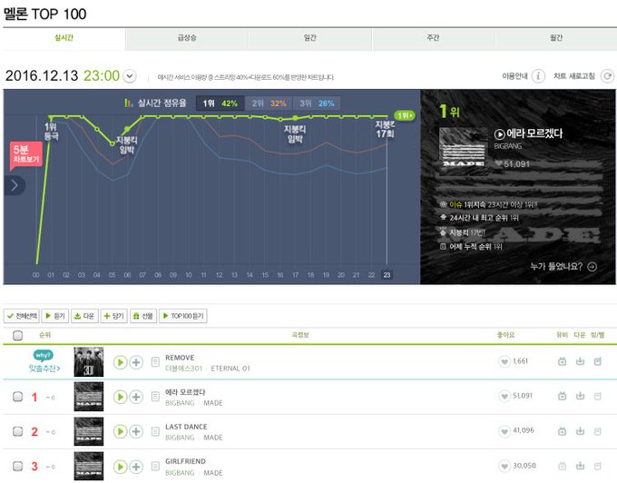 After 23 hours of release FXXK IT hits the melon roof for 17 times, Last Dance for 6 times and Girlfriend for 2 times. #BIGBANGMADEFULLALBUM pic.twitter.com/iDkRB3413W